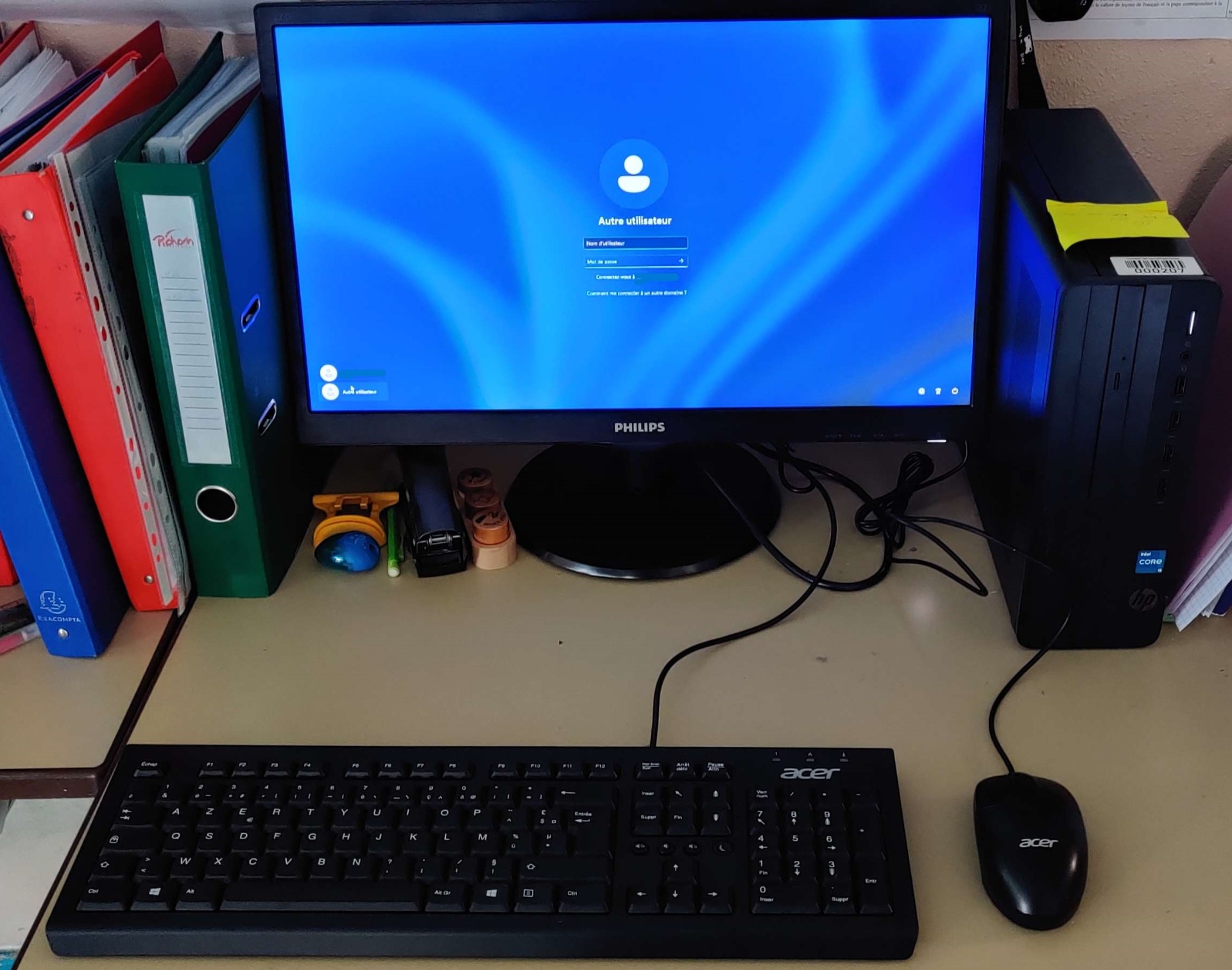 Sur la gauche, une photo d'un nouvel ordinateur déployé, encore avec son ancien clavier et souris (test du PC, changé par la suite.)