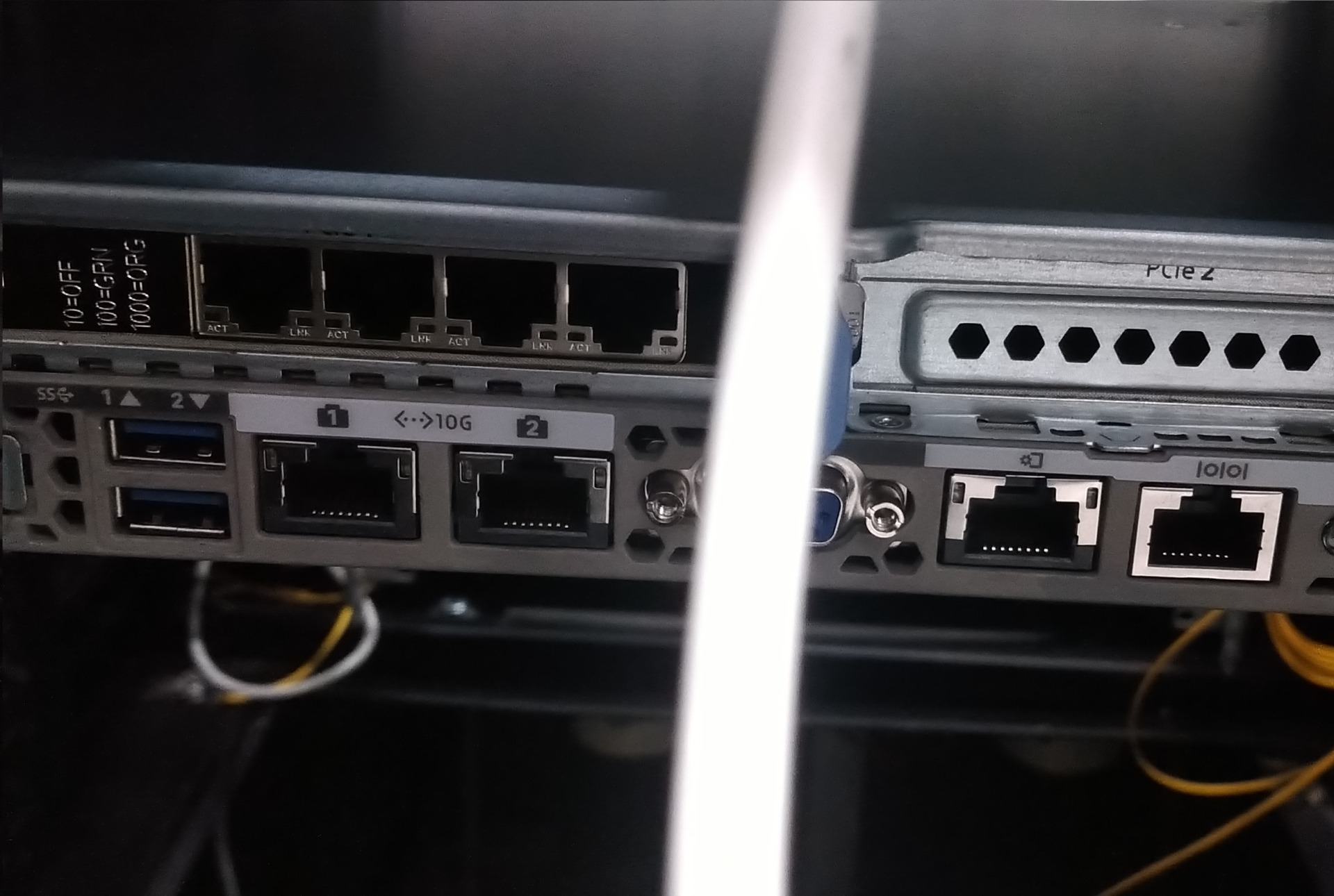 - La liaison orange est spéciale, c'est une liaison dite de management. Après la configuration du port du switch serveur, un VLAN spécial lui est attribué pour autoriser la connexion à distance.